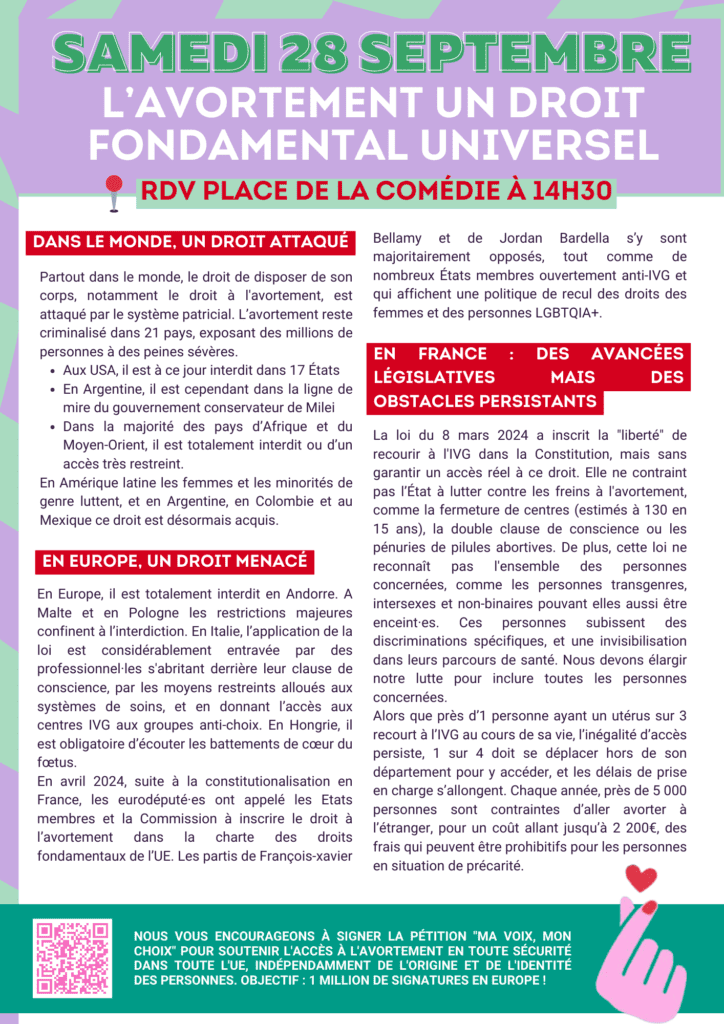 28 septembre : Journée de lutte pour le droit à l’avortement